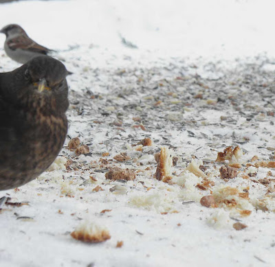 Ensin on variksia, ne löysi ruuan, minkä niitä varten laitoin.